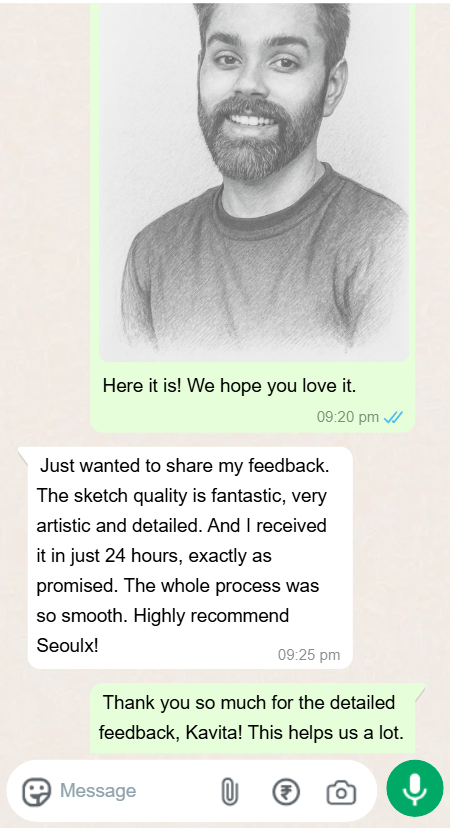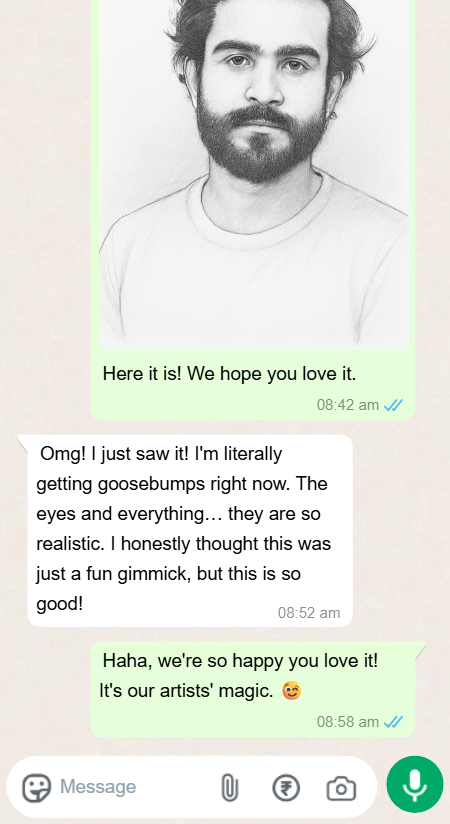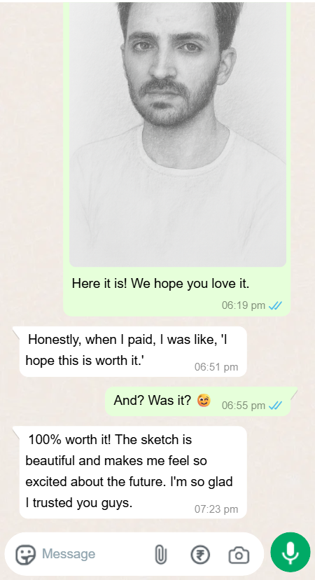 Our service is highly rated at 4.8 stars by thousands of satisfied customers who've been delighted with their sketches. This outstanding rating is a testament to the quality of our work and the happiness we bring to those seeking a glimpse of their future love.